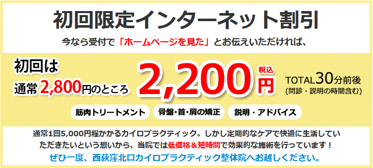 筋肉トリートメント(ほぐし)10分+カイロプラクティック15分